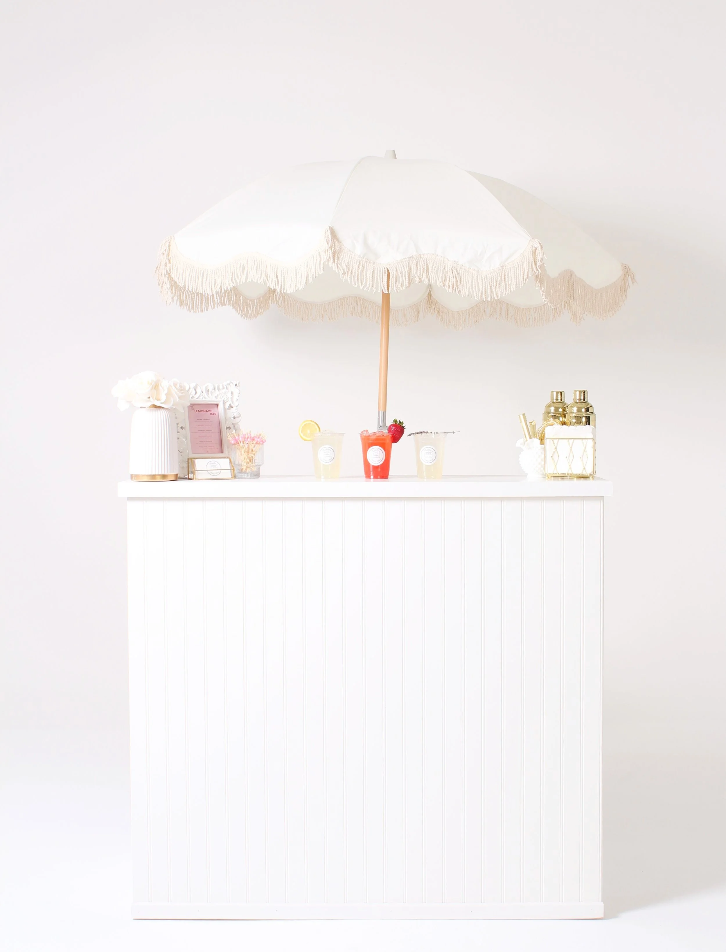 Your go-to mobile bar stand for any occasion! Our portable bar setup is designed to elevate your events, from bridal showers to graduations, birthdays, pool parties, and so much more. This stand is beautifully decorated, creating a welcoming vibe that complements the theme of your event. It is 46” high and 48” long. Let us bring the bar to you!